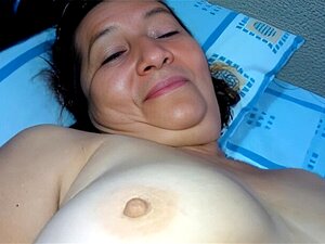 Maduro handjob milf em spex usa ambas as mãos para puxar enquanto se monta